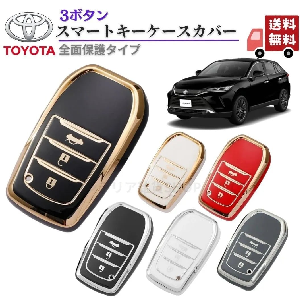 トヨタ E型 スマートキーケースカバー 3ボタン ハリアー80系/プリウス60系/ランドクルーザー200系/ヤリスクロス/ヤリスYARISなど対応 TPU キーカバー
