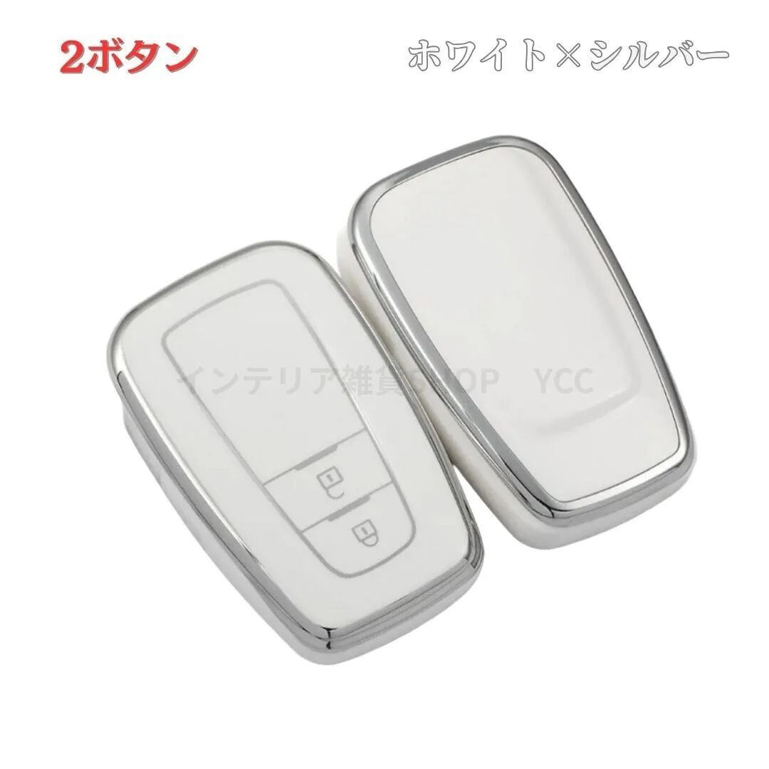 トヨタ F型 スマートキーケースカバー 2ボタン プリウス50系 C-HR クラウン220系 ランドクルーザープラド150系など対応 TPU キーカバー