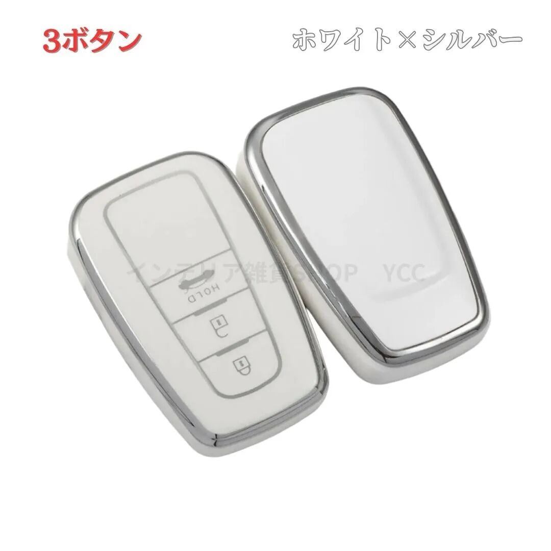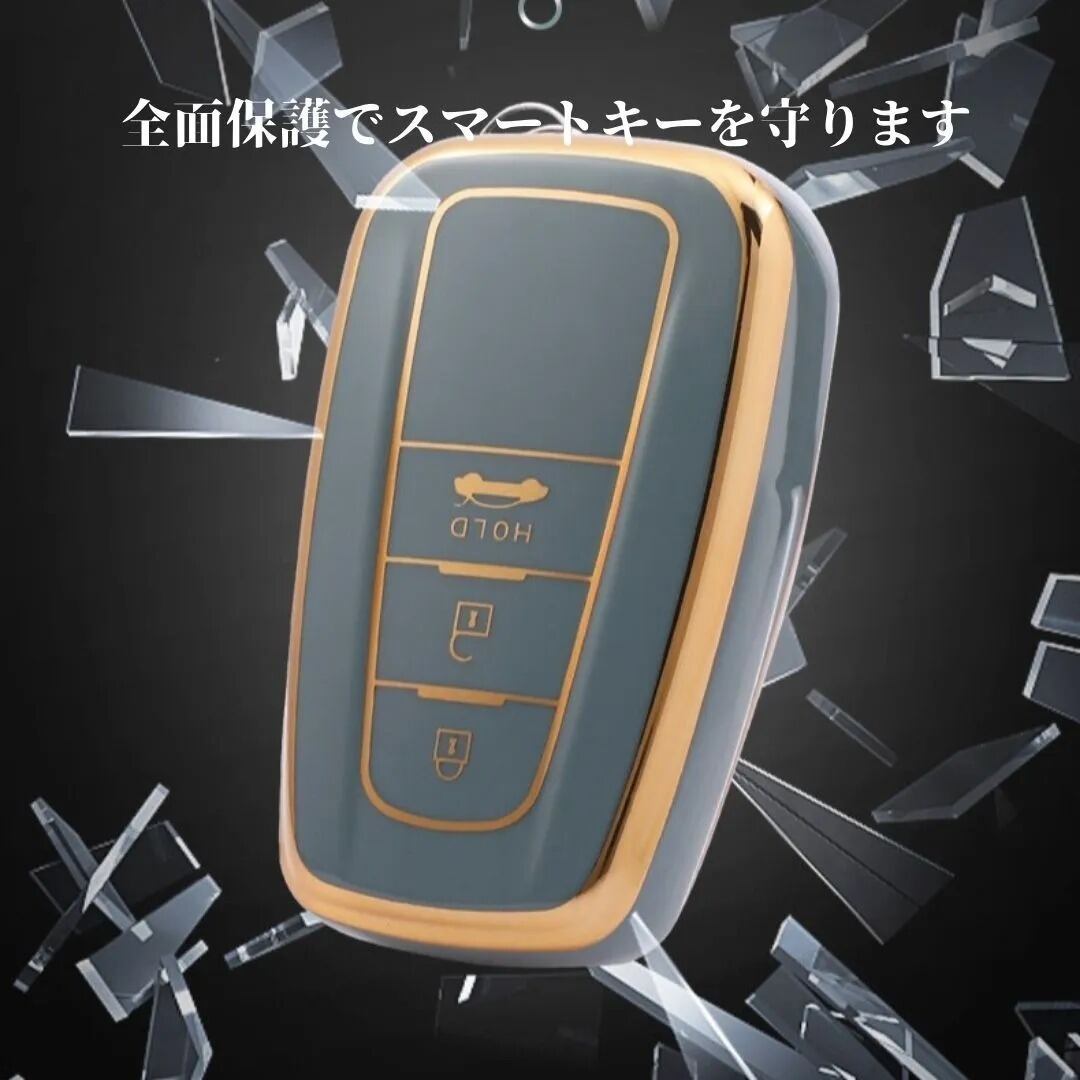 トヨタ F型 スマートキーケースカバー 3ボタン プリウス50系 C-HR クラウン220系 ランドクルーザープラド150系など対応 TPU キーカバー