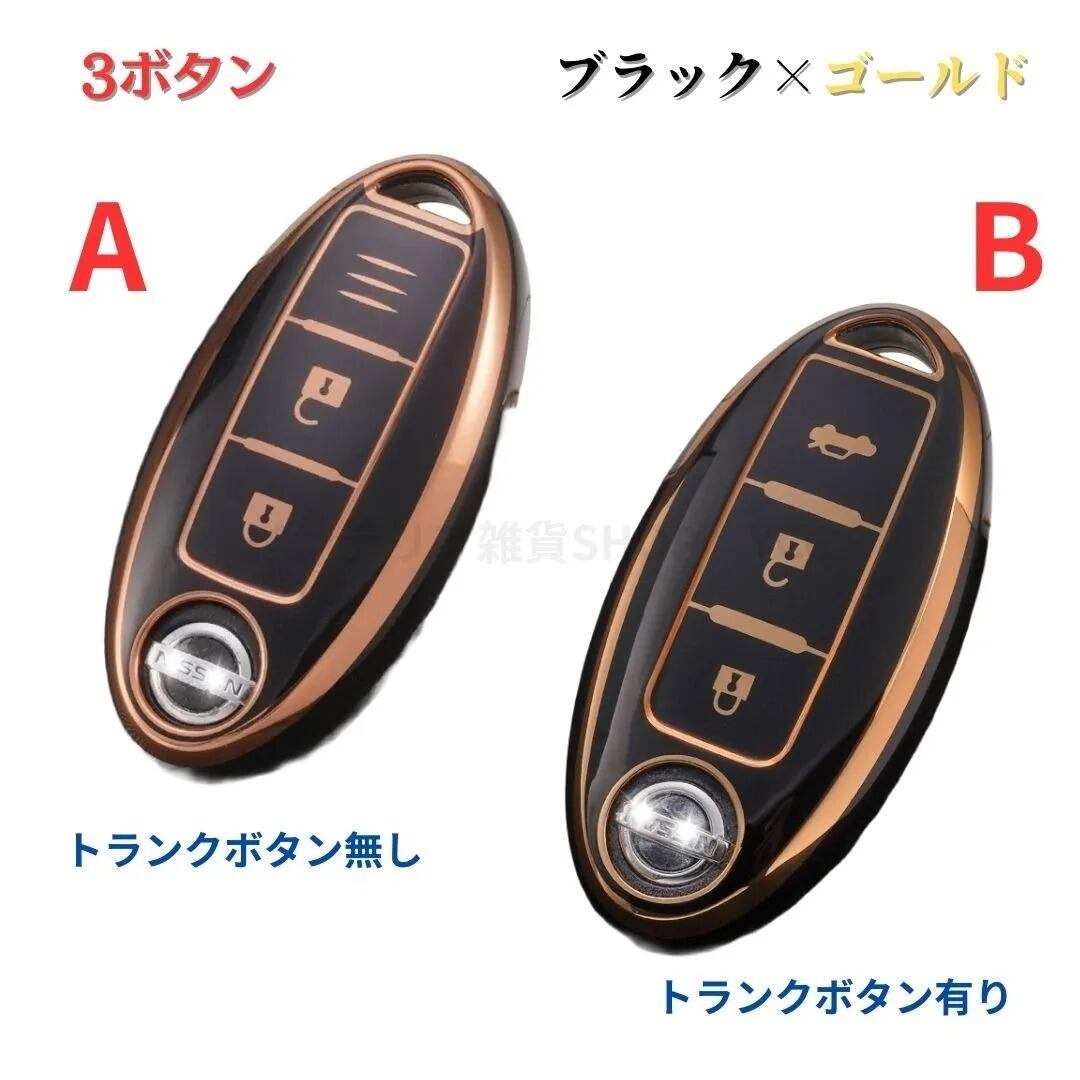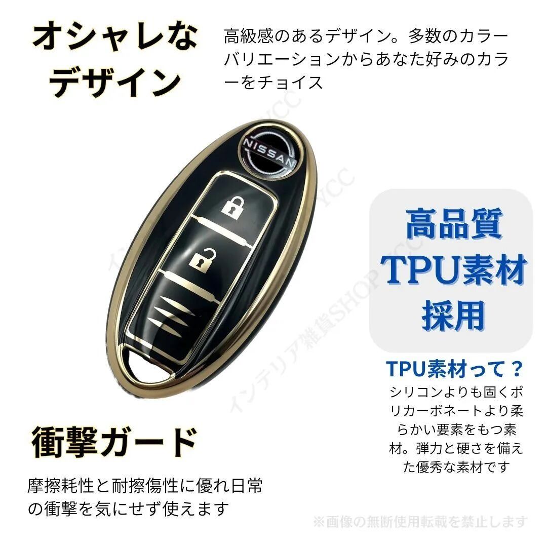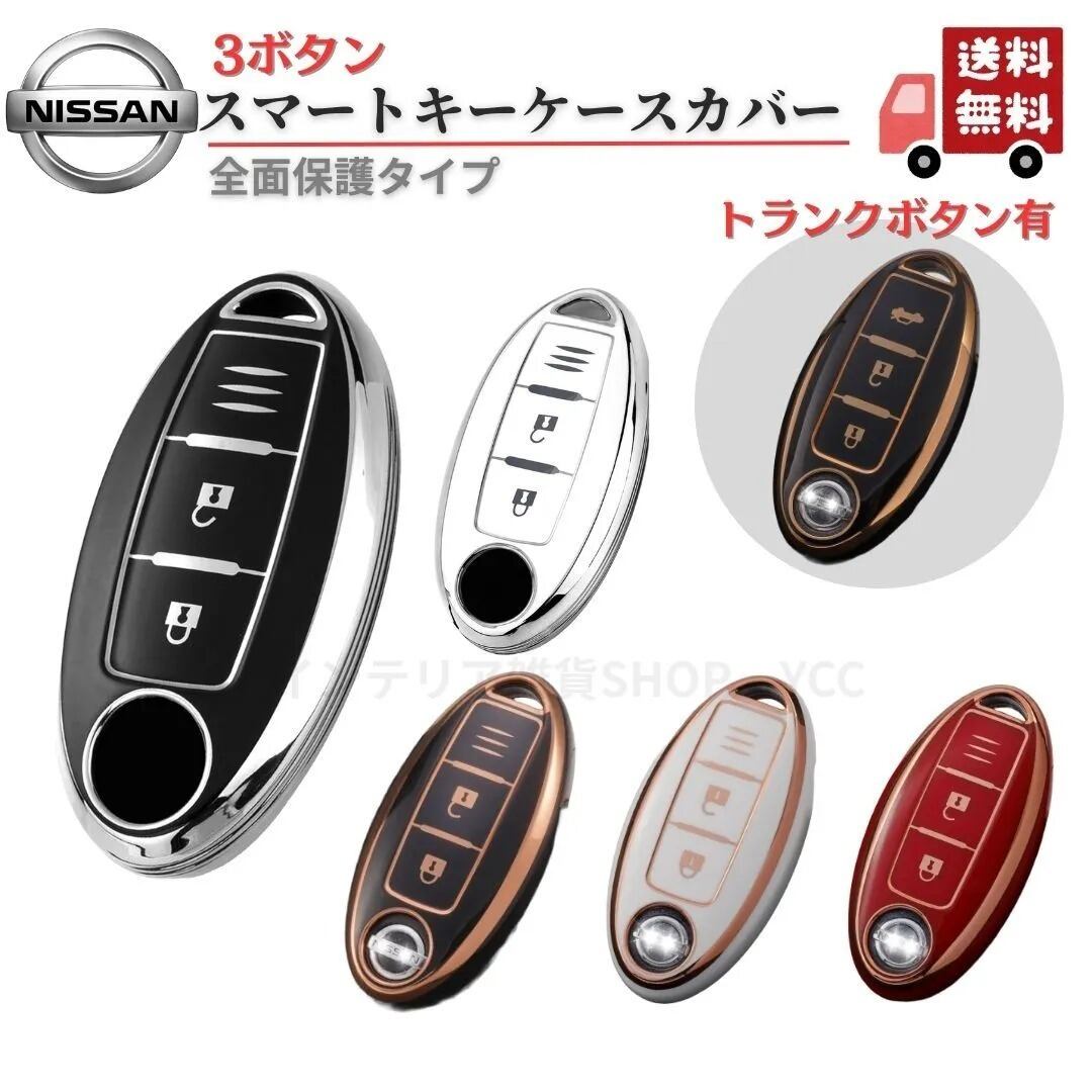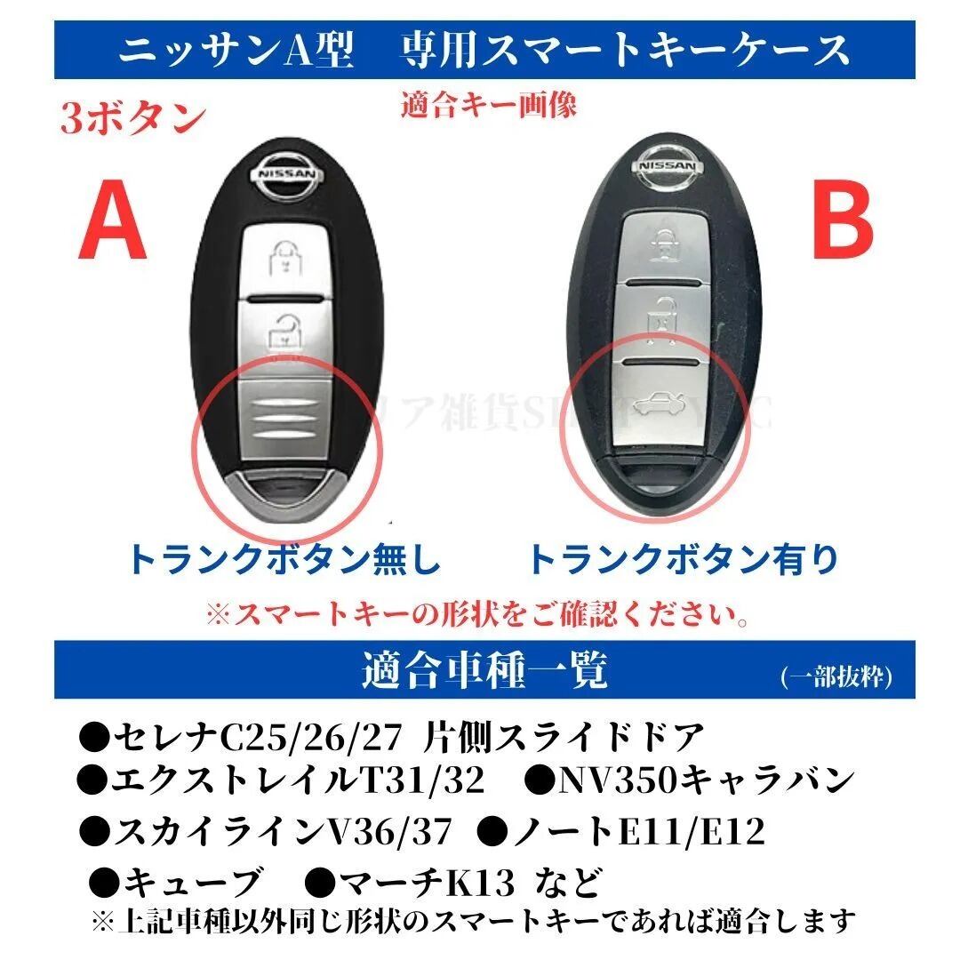日産 NISSAN A型 スマートキーケースカバー 3ボタン セレナC25C26C27 エルグランドE52 エクストレイルT31T32 NV350キャラバン スカイライン フェアレディZ キューブ ノートE11後期NE12/E12 マーチK13など対応 TPU キーカバー