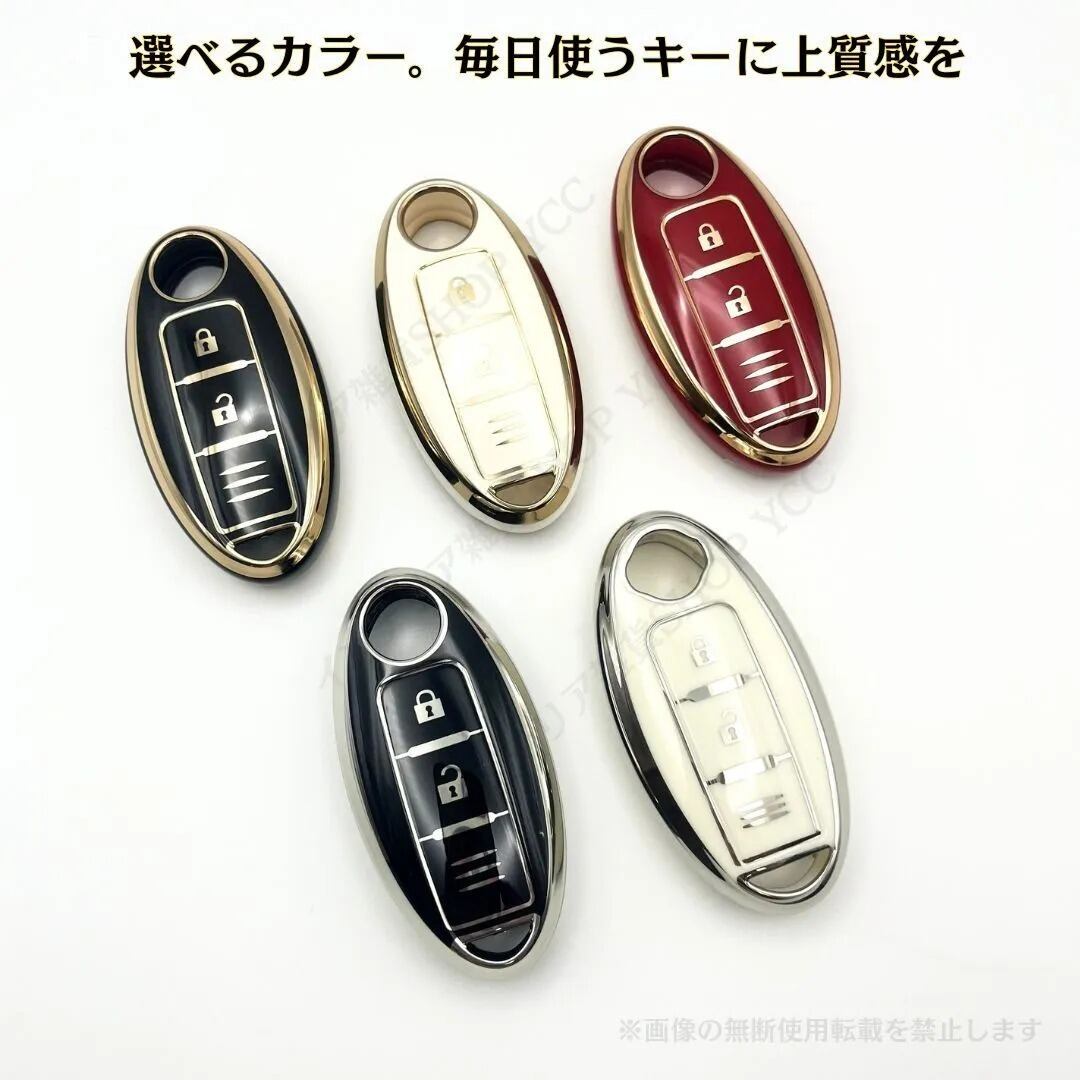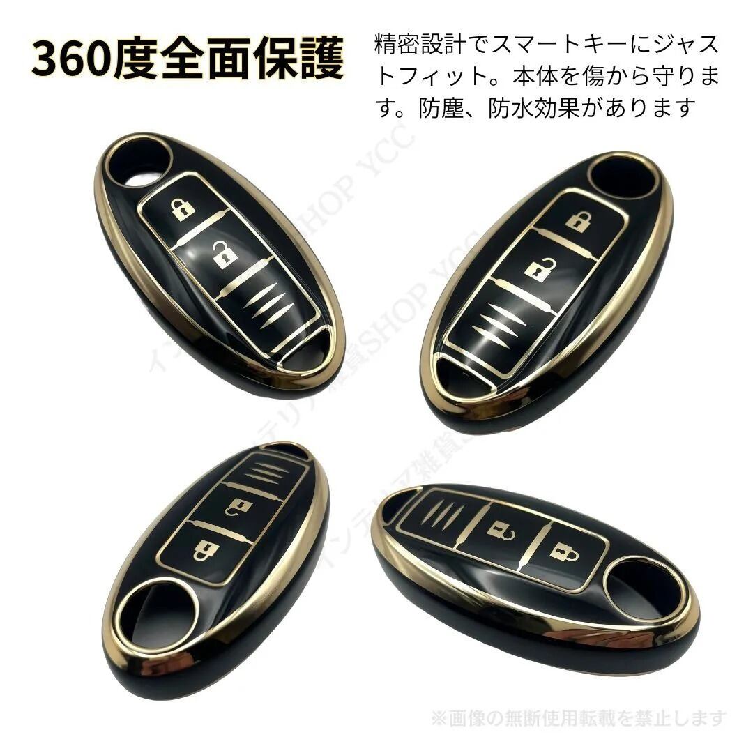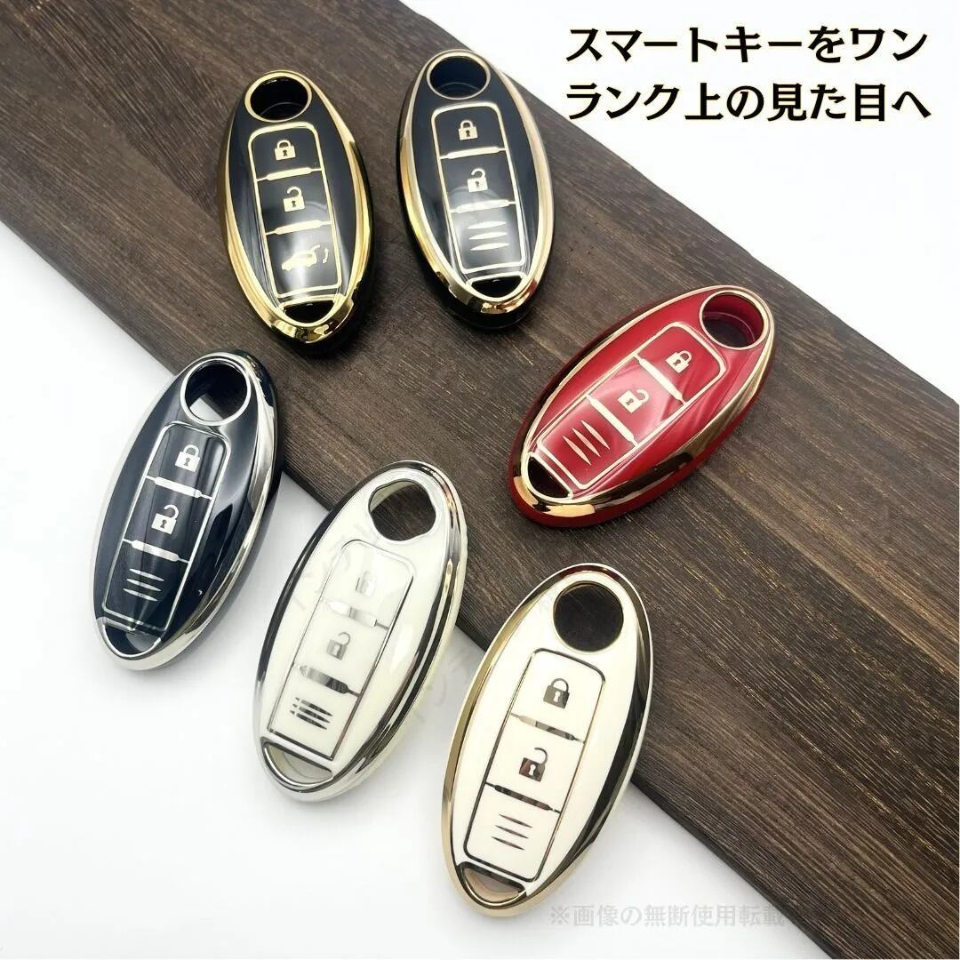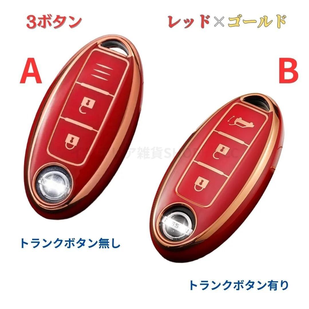 日産 NISSAN A型 スマートキーケースカバー 3ボタン セレナC25C26C27 エルグランドE52 エクストレイルT31T32 NV350キャラバン スカイライン フェアレディZ キューブ ノートE11後期NE12/E12 マーチK13など対応 TPU キーカバー